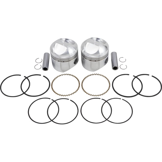 - Kit Includes pistons, rings, retainer clips and chrome piston pins